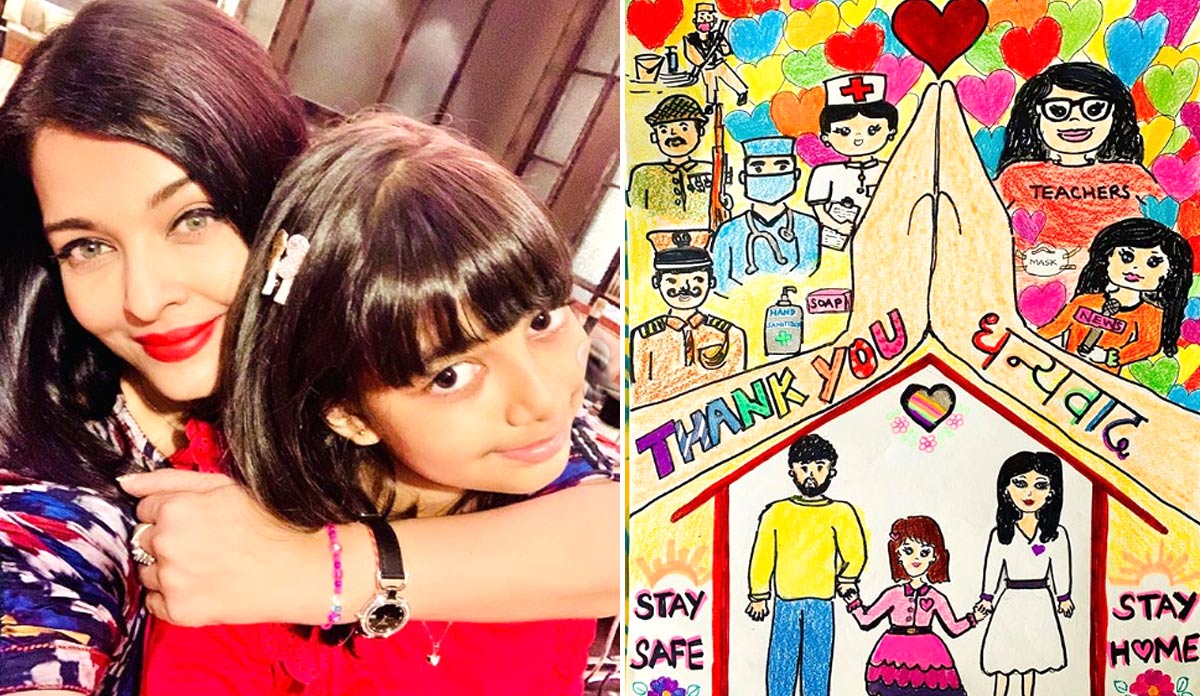 बॉलीवुड एक्ट्रेस ऐश्वर्या राय बच्चन की 8 साल की बेटी आराध्या बच्चन ने कोरोना वॉरियर्स को धन्यवाद देने के लिए एक स्कैच बनाया है। साथ ही घर पर सुरक्षित रहने की अपील की है। ऐश्वर्या ने सोशल मीडिया पर इसकी फोटो शेयर की है।